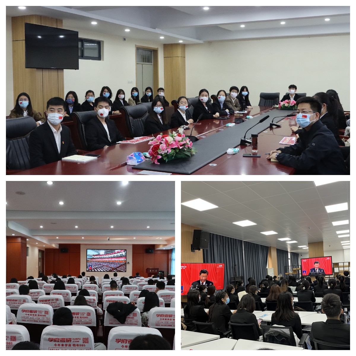 为第一时间了解大会盛况,及时、全面、准确掌握大会精神,学院党委组织全院师生收听收看了大会开幕会。结合疫情防控有关要求,学院党委分别在西教四105智慧教室、216学术报告厅、309会议室和300党员活动室组织了集中收看,学院全体党委委员、院领导分别参加包联支部的集中收看活动,学院机关工作人员、辅导员、教师代表、学生党员、入党积极分子240余人参加,学院其他师生自行收看。