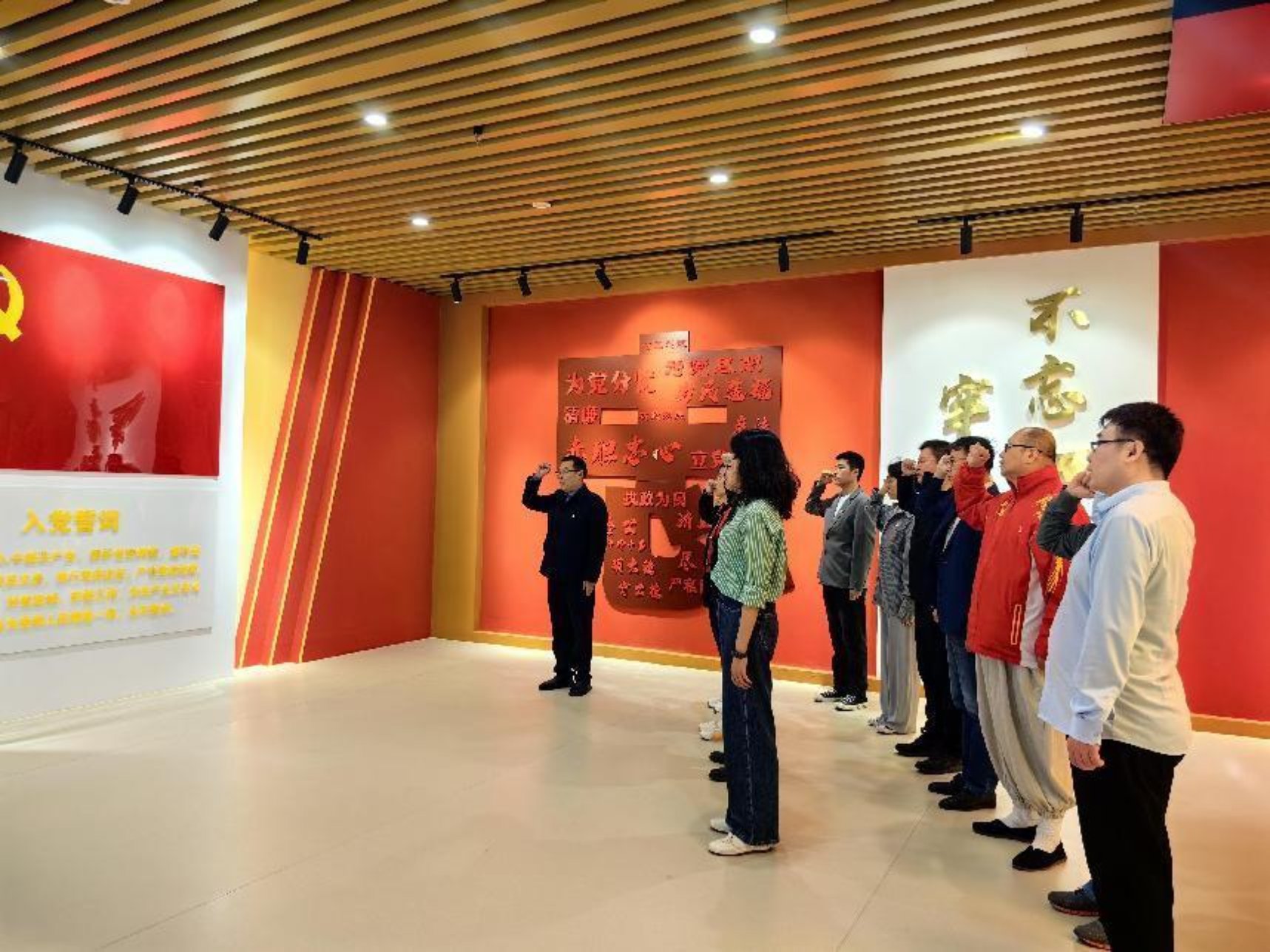 全体党员面对鲜红党旗,高举右拳,再次庄严宣誓,重温入党誓词。铿锵恢宏的誓词,强烈震撼着在场的每一位党员。