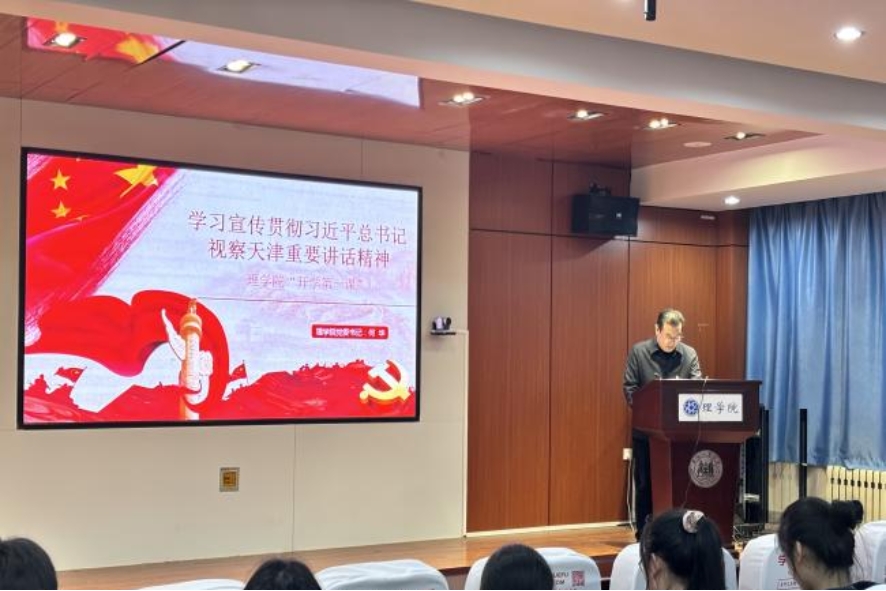 为深入领会学习贯彻落实习近平总书记视察天津重要讲话精神的重大意义,全面准确把握习近平总书记重要讲话精神的精髓要义和实践要求,激励广大青年党员进一步提高政治站位、强化政治担当,3月22日,理学院党委书记何华以“学习宣传贯彻习近平总书记视察天津重要讲话精神”为主题,开展理学院“开学第一课”专题党课宣讲,学院全体本科生党员、研究生党员及部分积极分子参加。