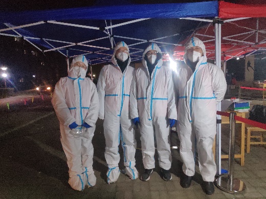 1月8日,学院王国松和岳振两位老师看到教工党员志愿者微信群召集志愿者时,纷纷第一时间报名参加。两人既是工作的同事,又是抗疫的战友,先后参加了学校教师公寓物业楼采样点9日、12日、15日和20日的四次“大筛”,有过早上6点到校工作,有过晚上8点多离开学校,连续奋战近30个小时,担任核酸检测采集信息录入工作,累计录入4000余人次信息。王国松和岳振两位老师坚持极端负责的工作作风,留样试管启用前,多方核对条码编号;登记居民信息时,逐人核对姓名、身份证号;封箱、封管前,会同采样医务人员确认样本、核对总数,四轮“大筛”下来,两人均已成为“流程控”,全程未发生人员疏漏或样本错误,现场医务人员一致表示,“有学校‘大白’们的帮助,我们的工作也更顺畅了”。
