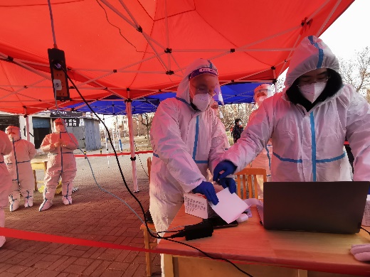 学院师素双老师在微信工作群看到学校招募核酸检测志愿服务者的消息后,第一时间报名参加,1月15日和20日在北辰校区体育中心负责核酸采集录入工作,从早上6点一直到下午2点,每2人一组,每2小时一轮换,为全校第三次和第四次核酸检测助力。