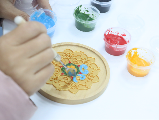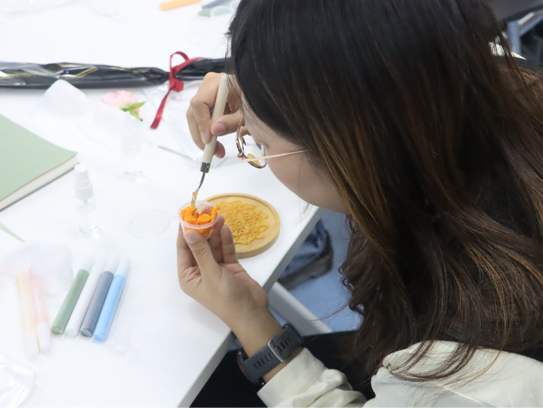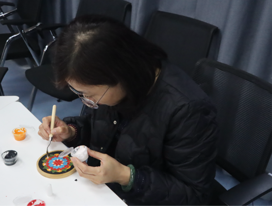 聆听过后,便是期待已久的创作时光。在任老师的指导下,老师们淘洗沙土、调配颜料、设计画面效果进行色彩填充。每一次落笔,都将匠心与巧思凝注于砂料之间,让传统珐琅彩的魅力在指尖缓缓绽放。