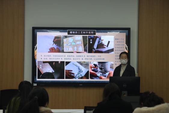 活动伊始,大家齐聚理学院西教四105室,开启非遗螺钿匠心传承体验。数学243班郝紫喧同学深入浅出地讲解螺钿制作工艺,让大家对这门古老技艺有了深刻了解。