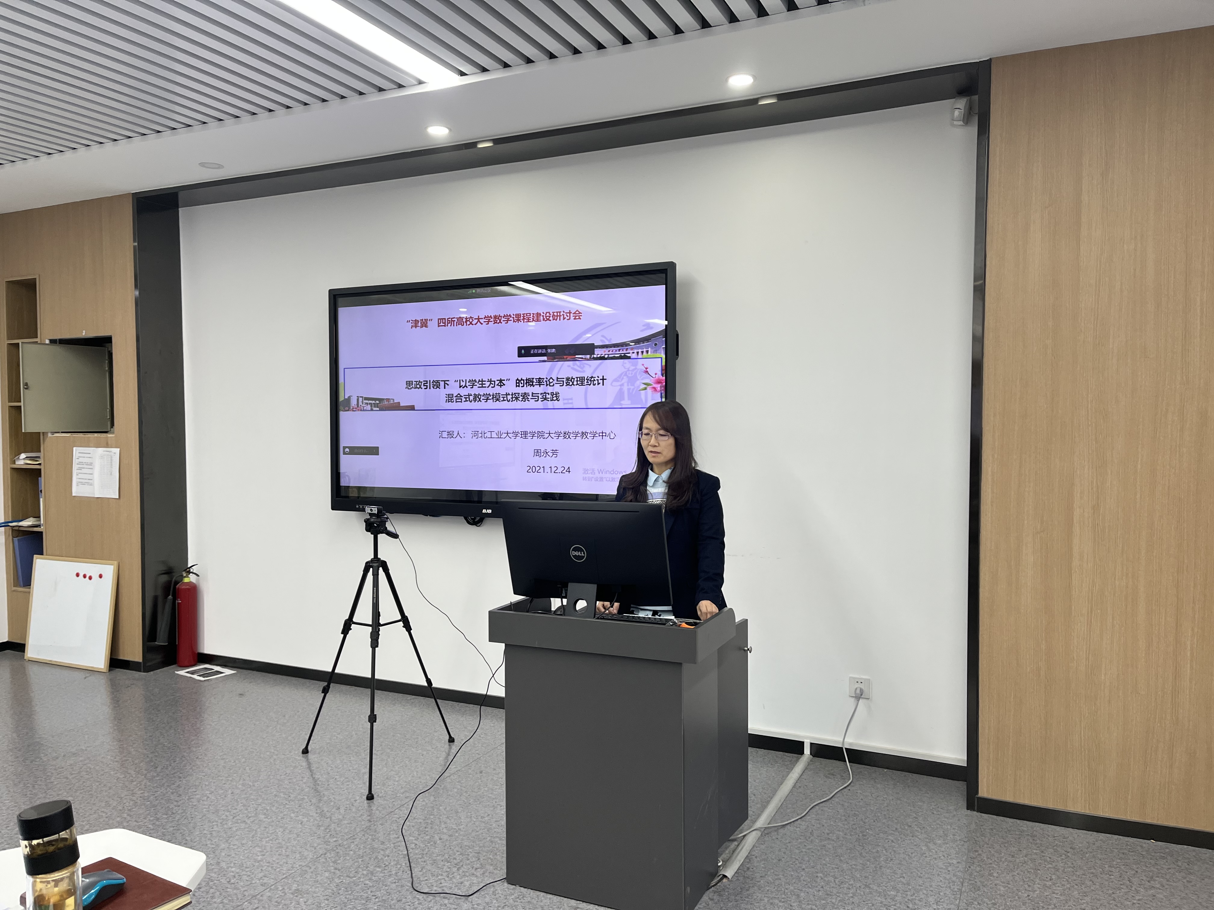 我院周永芳副教授做了题目“思政引领下‘以学生为本’的概率论与数理统计混合式教学模式探索与实践”的报告。四位报告人围绕面向新工科大学数学课程改革、教学资源建设、混合式教学改革、青年教师培养、助教管理、过程性考核以及无纸化考核方式改革等方面介绍了各自学校的经验与做法,讨论了各自高校大学数学课程建设中遇到的问题。