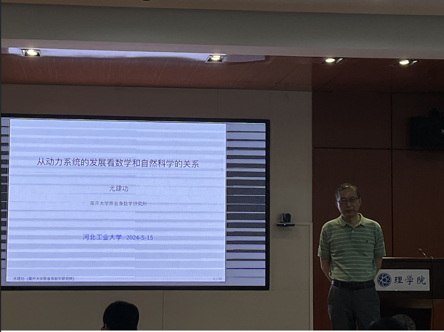 2024年5月15日,南开大学陈省身数学研究所尤建功教授受邀来我院做学术报告,报告题目为“从动力系统的发展看数学与自然科学的关系”。报告面向全校师生开放,由理学院何华教授主持。