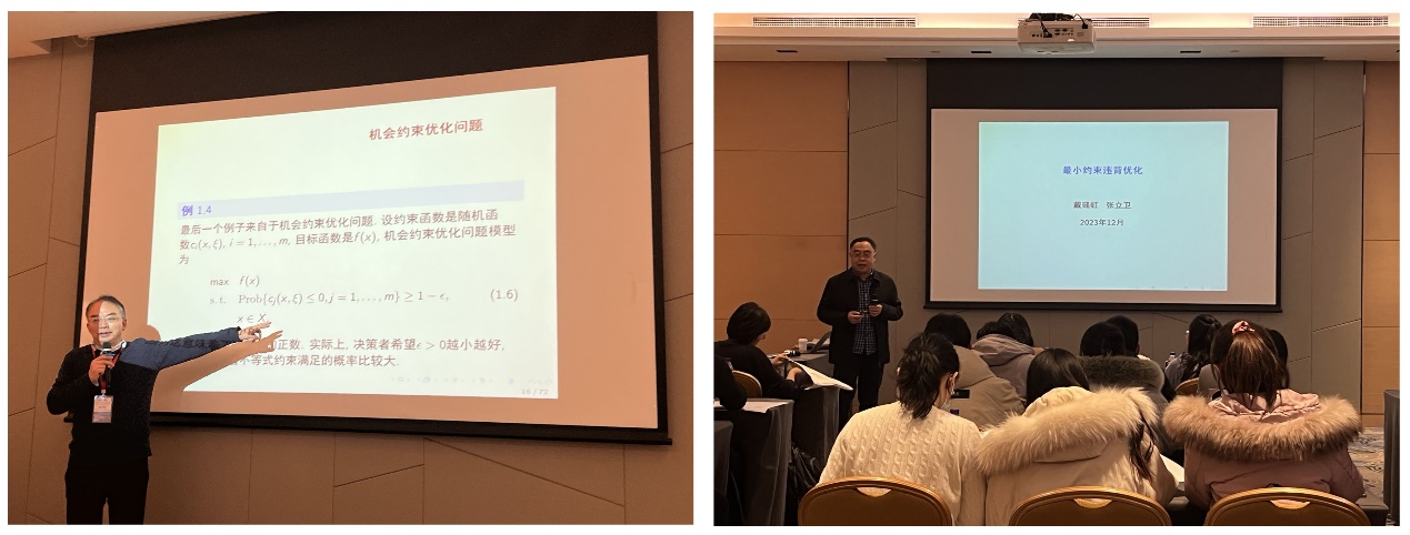 12月8日下午,中国运筹学会理事长、中国科学院数学与系统科学研究院副院长戴彧虹研究员和中国运筹学会常务理事、大连理工大学张立卫教授讲授短期课程“最小约束违背优化”。他们通过具体实例,介绍了最小约束违背优化的基本概念和最新进展。