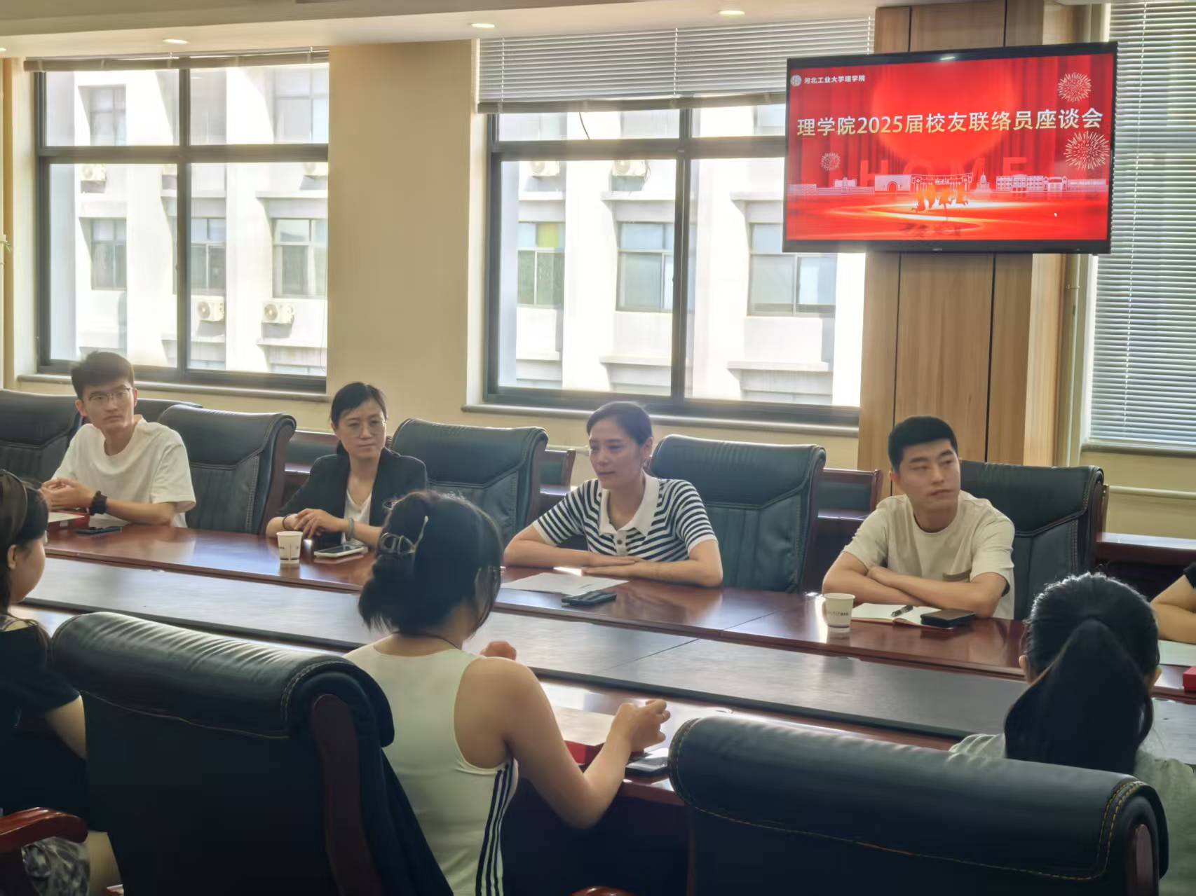 为凝聚校友力量,助力学院高质量发展,6月17日上午,理学院2025届校友联络员座谈会在学院309会议室举办。学院党委副书记兼副院长张旭、学工办主任兼团委书记、2021级辅导员魏梦坤以及全体2025届校友联络员出席,会议由学院副处级辅导员张培培主持。