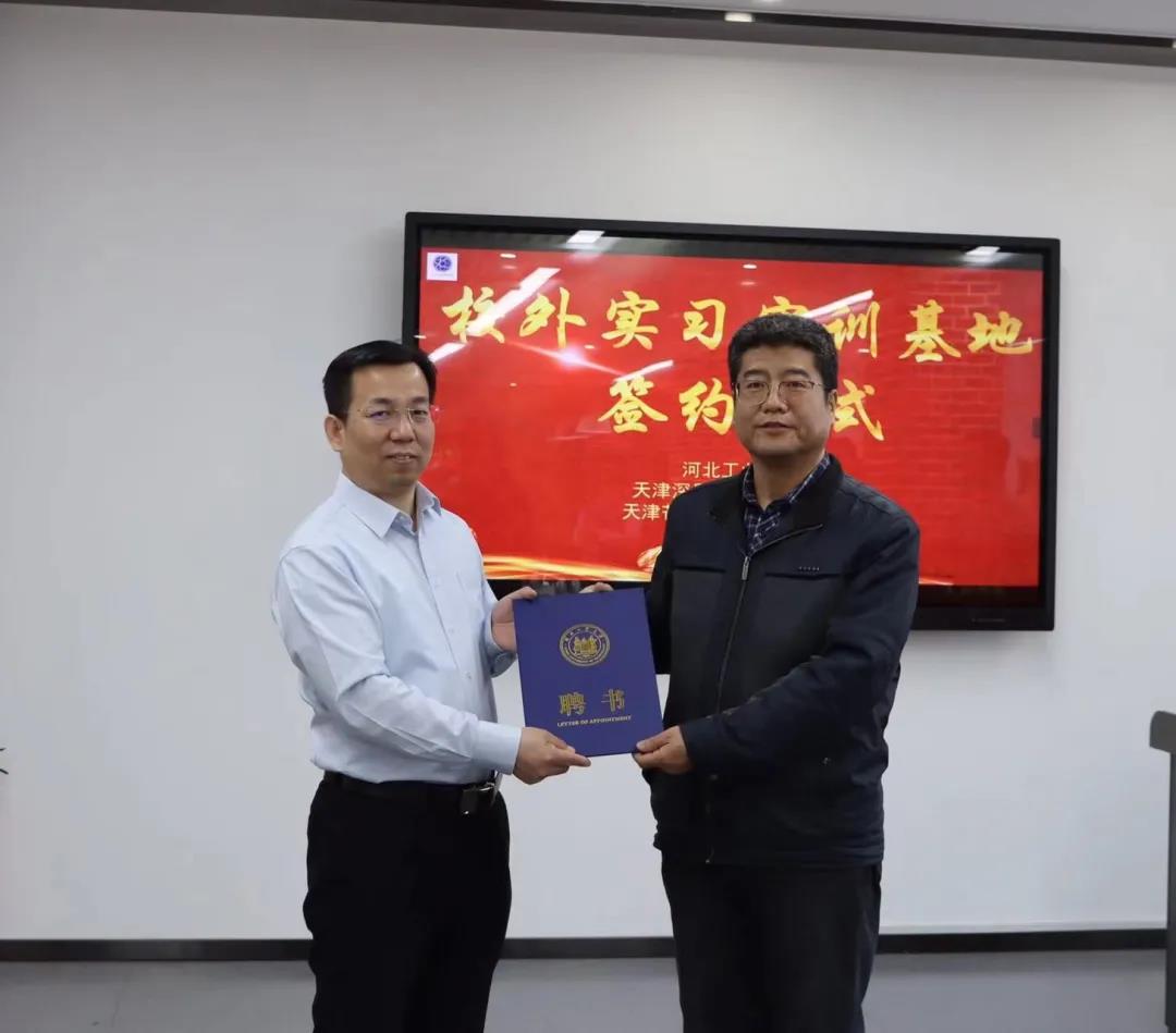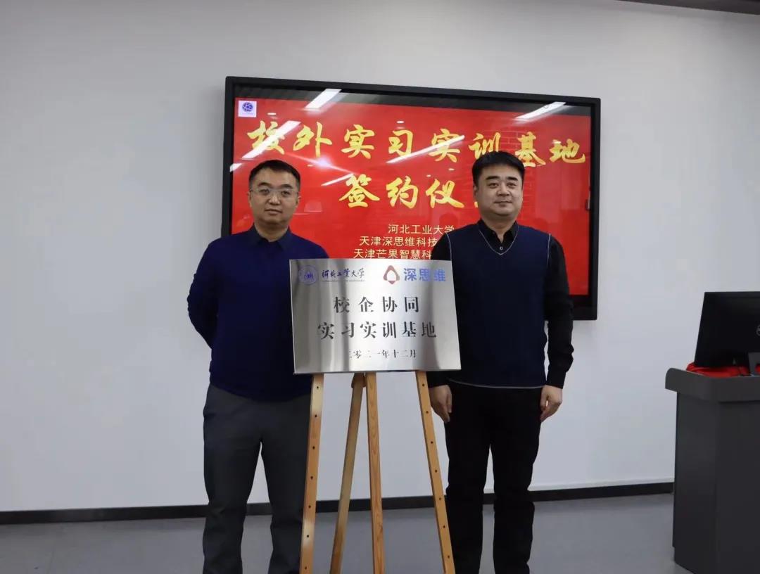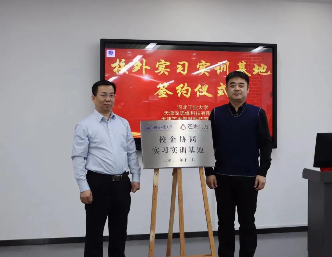 随后,本科生院副院长韩永代表河北工业大学分别与天津深思维董事长张曦、天津芒果智慧科技总经理李继刚签署本科生校企协同校外实习基地合作协议,并向天津深思维科技有限公司、天津芒果智慧科技有限公司授牌。理学院党委书记万林战代表学校分别为天津深思维科技有限公司、天津芒果智慧科技有限公司企业导师颁发聘书。
