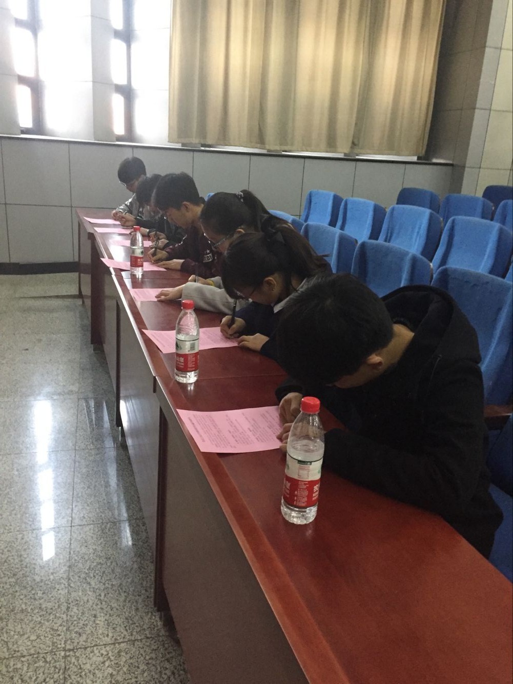 签订仪式由团委书记张培培老师主持,张老师列举了近来发生在大学生身边的种种失信现象,考试作弊、学术抄袭、校园不良贷款、代打卡代点名、上课迟到早退、作业抄袭……这些现象在很大程度上影响了社会对大学生群体的评价,严重制约了大学生的成长成才。学生代表信计151班项亚磊同学宣读了诚信承诺书内容。宣读完毕,各班代表领取并签署了承诺书,全体与会学生代表一一上前在活动条幅上签署了姓名。