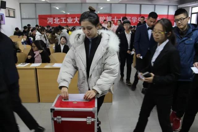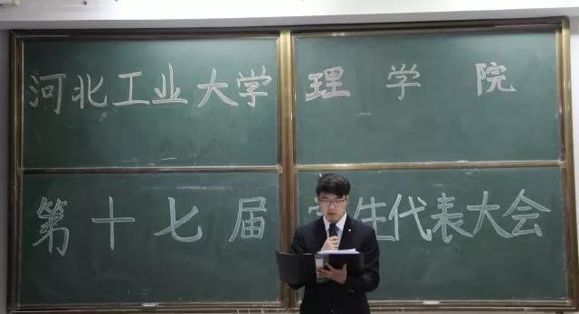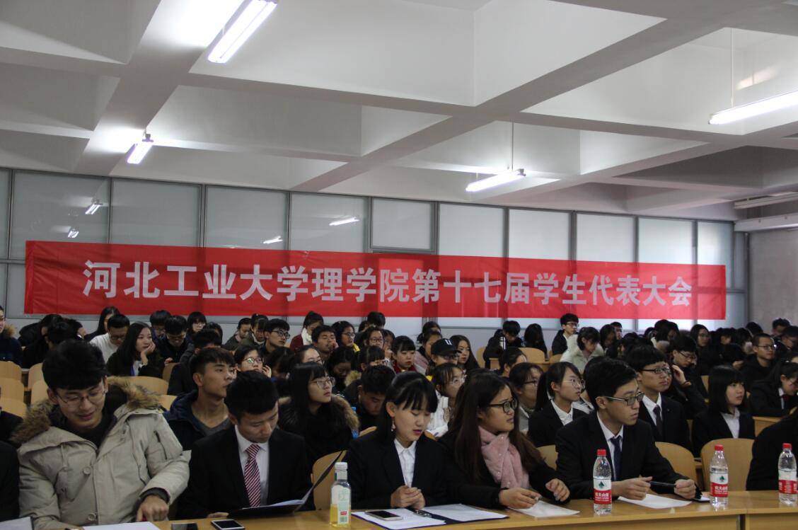 12月15日下午,河北工业大学理学院第十七届学生代表大会在北辰校区实验楼503举行。莅临大会的嘉宾有理学院党委副书记兼副院长张雪莹老师、理学院学工办主任兼团委书记张培培老师、理学院2014级辅导员吕晓辉老师。理学院团委学生会全体成员、各学生班级代表及社团代表共计一百二十余人出席了此次大会。