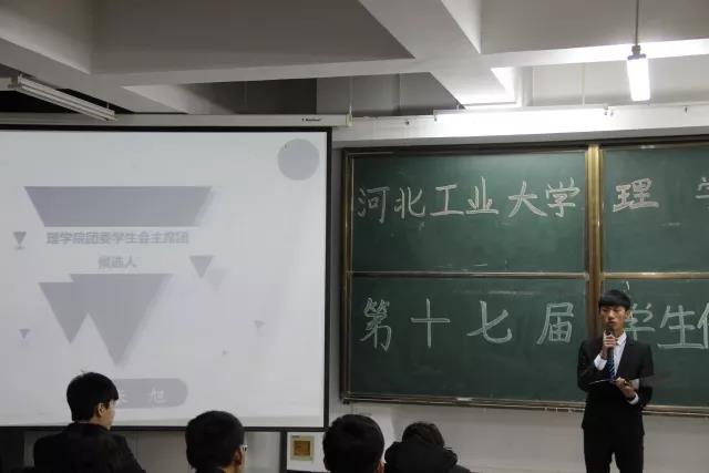 随后,理学院团委学生会执行主席宦昱晨同学宣读并审议河北工业大学理学院团委学生会章程,并由副主席郁文同学宣读新一届团委学生会主席团换届选举办法以及候选人名单、个人基本情况。