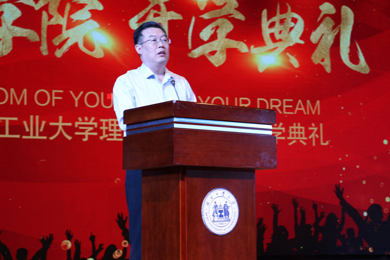 典礼的帷幕缓缓拉起,首先是副院长何华老师为新生致辞:立报国之志,做栋梁之材,树目标、不断激励自己做好自己的事,对新一届的理学学子提出了希翼与要求。