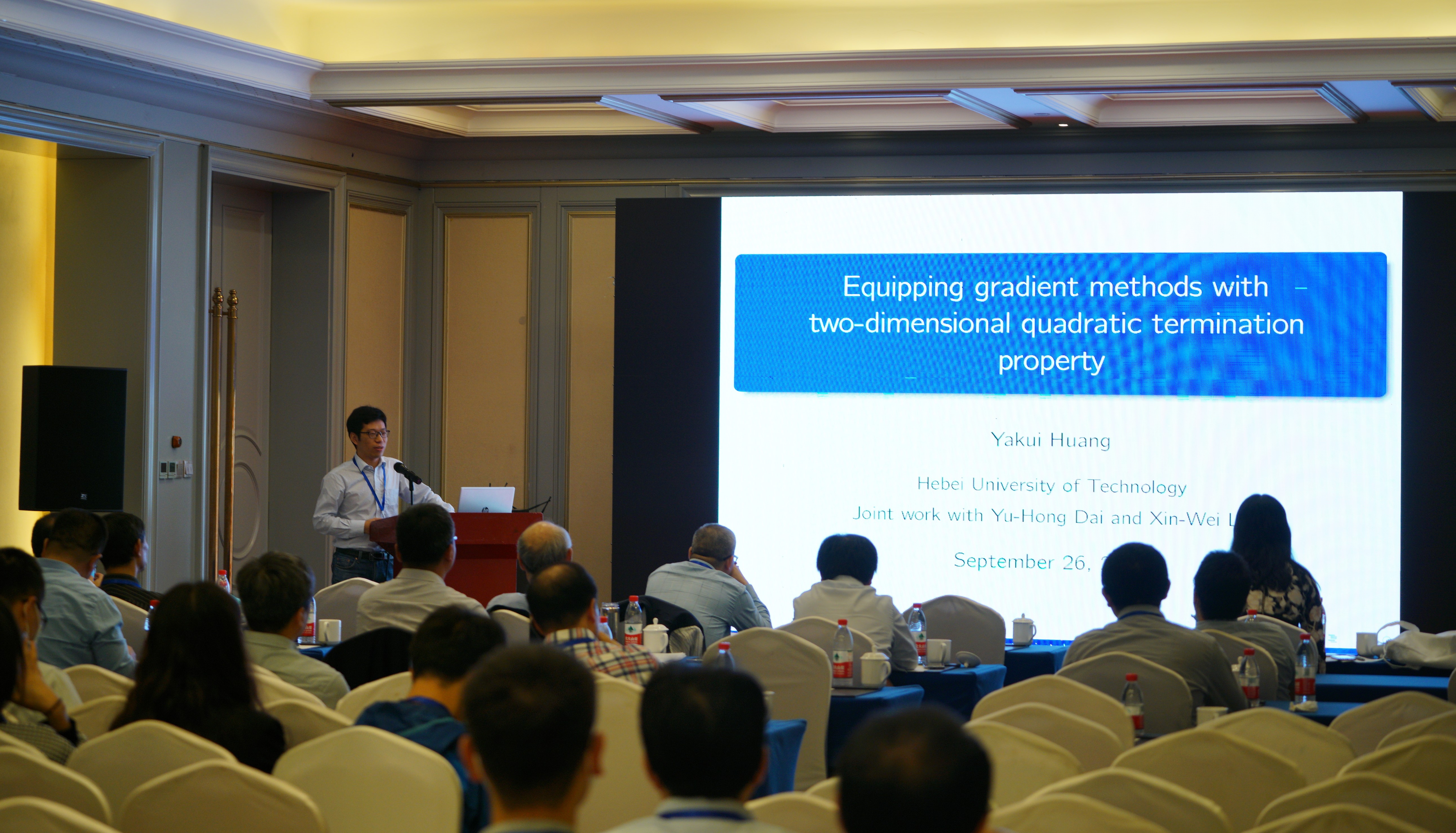 9月24日至26日,由北京计算数学学会、天津市数学会计算数学分会和河北省数学会计算数学分会共同主办,河北建筑工程学院承办的第五届京津冀计算数学学术交流会在张家口市举办。来自京津冀三地高校与科研机构的计算数学专家学者140余人参加了本次会议。我校理学院“元光学者”黄亚魁老师应邀做大会邀请报告,徐梦薇老师、樊军老师,及博士生于腾腾、高娟、王丹做大会专题报告。经过京津冀学术交流会学术委员会严格评审,于腾腾与中科院、北京大学、南开大学等12位青年博士和博士生的论文被评为大会优秀论文和最佳论文。
