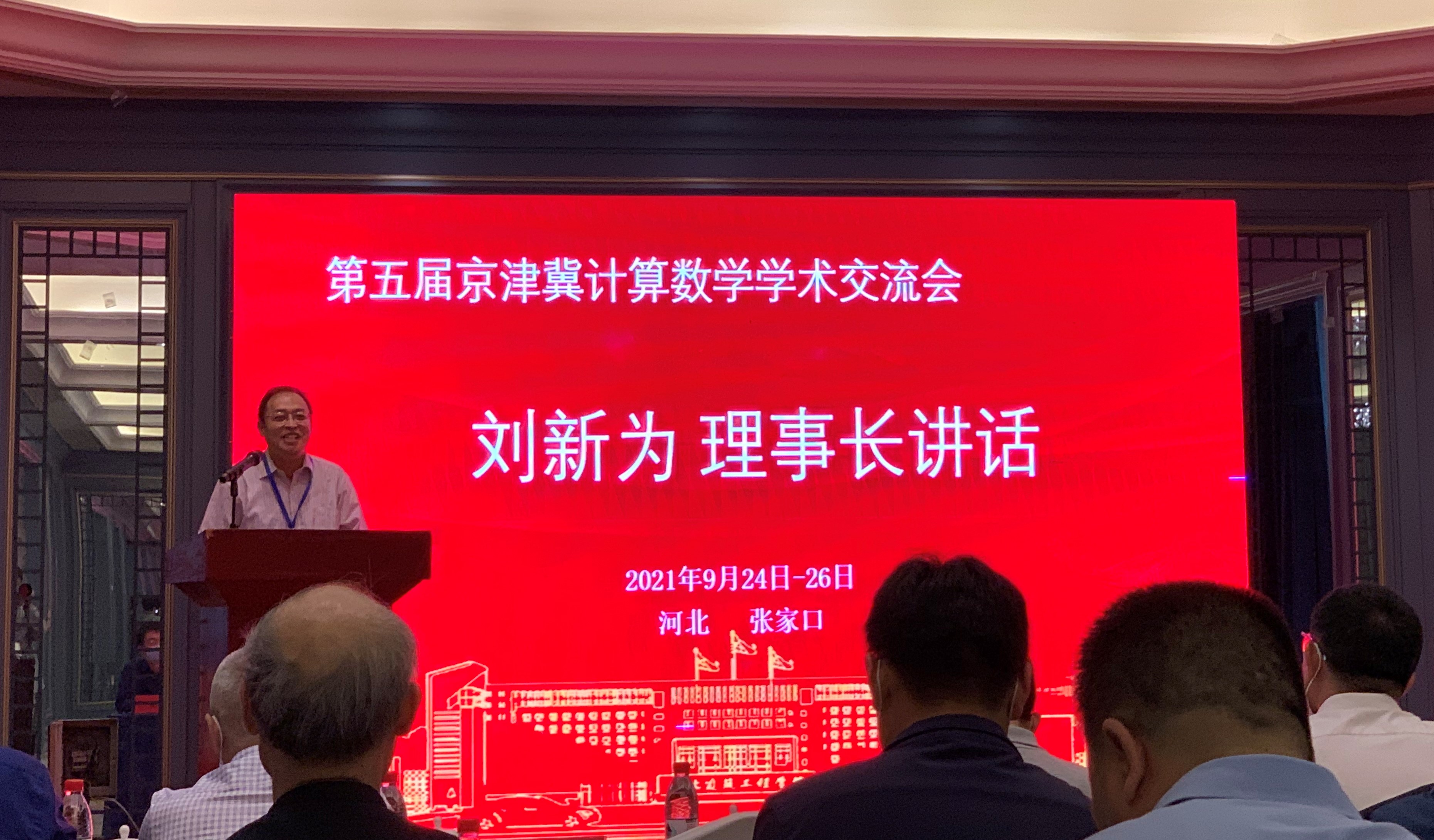 我校作为会议创始和发起单位之一的京津冀计算数学学术交流会已成为京津冀学术交流的一个重要平台,自2016年起开始举办,每年举办一次。首届会议由河北工业大学承办,并先后由天津财经大学、河北衡水学院、天津师范大学、河北建工学院承办。此次会议受疫情影响由去年延期到今年举办,北京大学胡俊教授、南开大学杨庆之教授、河北工业大学刘新为教授为大会共同主席。河北建筑工程学院校长师涌江、张家口市科学技术协会副主席穆军出席会议开幕式并致辞,河北建筑工程学院党委书记及其他领导会见参会嘉宾与代表。我校数学研究院常务副院长刘新为教授、南开大学数学科学学院副院长吴春林教授、北京大学数学科学学院党委书记胡俊教授出席会议并先后讲话。出席会议的还有中国数学会计算数学分会副理事长、北京大学数学科学学院副院长李若教授,国家“科学与工程计算国家重点实验室”主任、中国科学院数学与系统科学研究院张林波研究员,南开大学数学科学学院杨庆之教授,北京计算数学学会副理事长、中国科学院数学与系统科学研究院计算数学与科学工程计算研究所副所长曹礼群研究员,北京计算数学学会副理事长、北京应用物理与计算数学研究所成娟研究员,天津大学理学院黄正海教授,天津财经大学管理科学与工程学院执行院长张书华教授等。会议由天津市计算数学分会秘书长、南开大学数学科学学院党委副书记薛运华副教授主持。