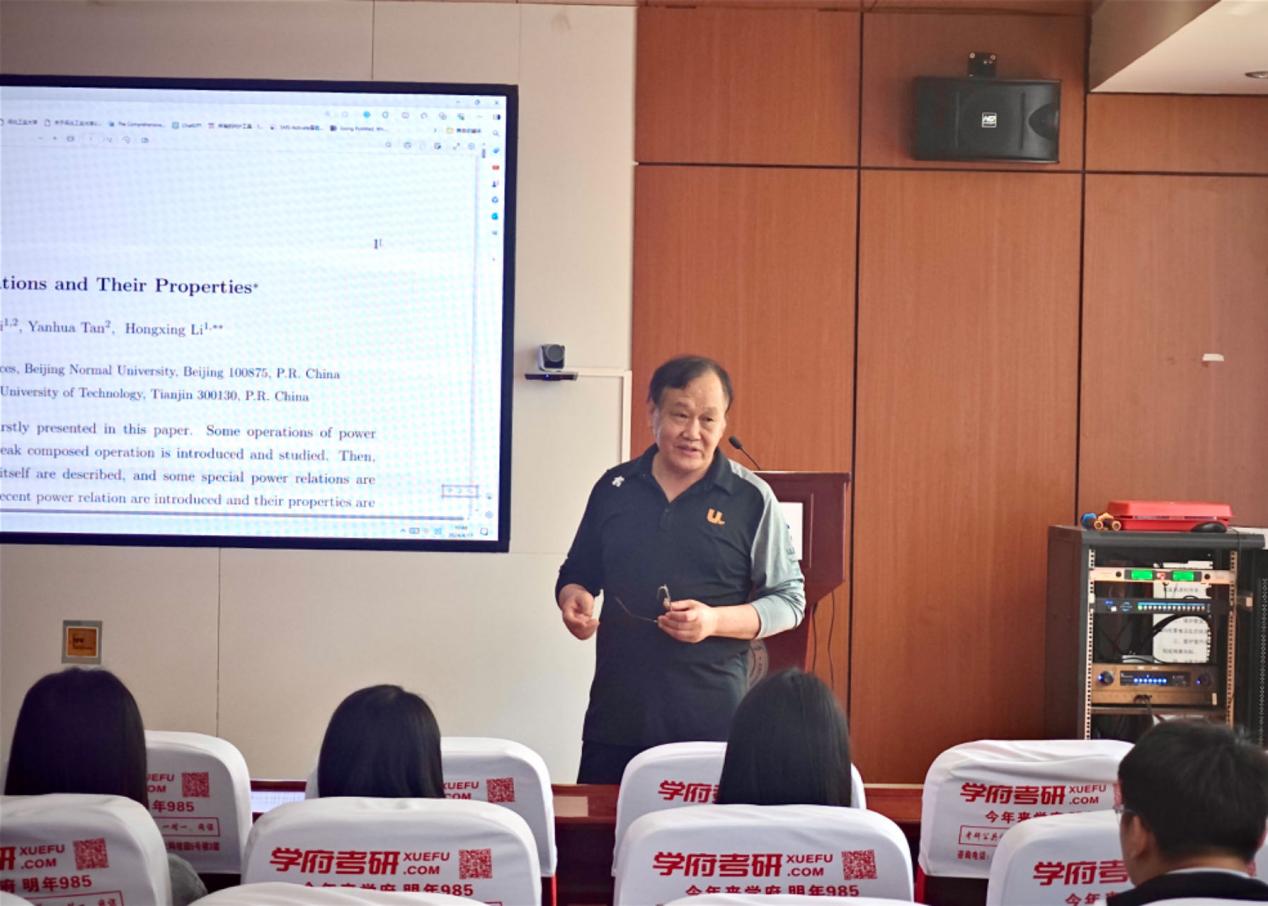 米洪海教授的报告题目为“Power Relations and Their Properties”。米教授首先提出了Power关系,讨论了幂关系的一些运算,特别是介绍和研究了弱组合运算。其后,描述了Power关系本身的一些性质,定义了一些特殊的Power关系。最后,引入了上阶和体面幂关系,并给出了它们的性质。