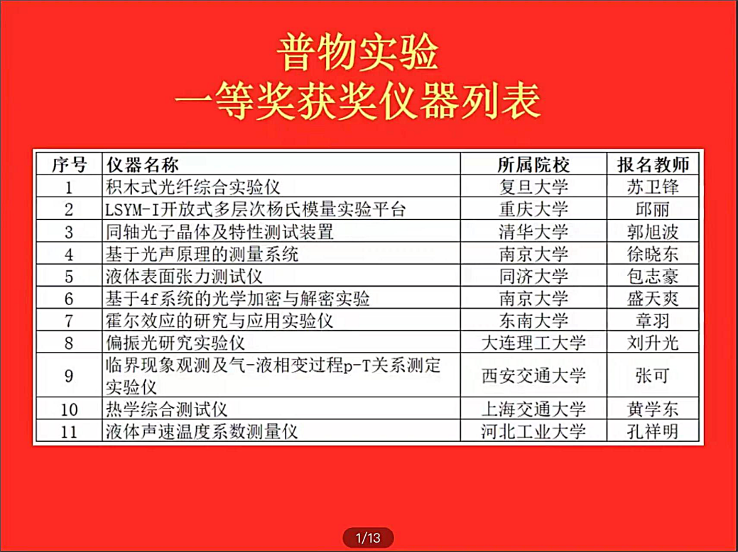 大学物理教学中心长期坚持自主仪器研发,已开发和改进百余套实验仪器用于本科实验教学。该作品是从中心教师在上世纪八十年代研制的仪器“超声光栅”基础上,经过六次迭代优化发展而来。该作品的获奖是中心教师集体智慧的结晶,是思想、文化传承的集中体现。