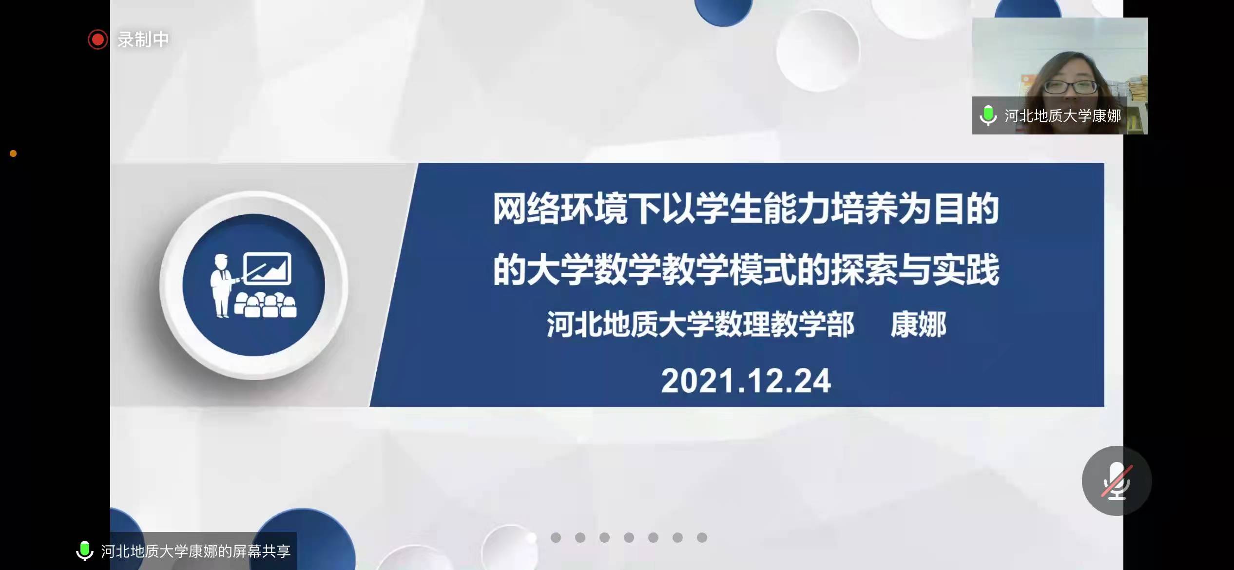 为加强大学数学课程教学改革,推进一流课程建设,深化各高校教学交流,12月24日由天津大学数学学院、华北电力大学数理系、河北地质大学数理教学部和河北工业大学理学院共同主办了“津冀”四所高校大学数学课程建设研讨会,会议由我院承办,采用线上会议形式。