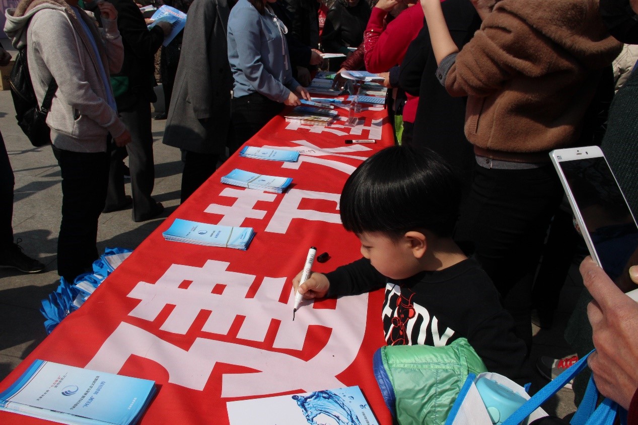悠扬的乐曲声中,理学院朗诵队的同学满怀情感,讴歌海河之美、水之珍贵,呼吁广大市民重视水资源、保护水资源、爱惜河道环境。海河管理处工作人员和志愿者们一起向市民发放宣传资料、宣传节水知识。前来北洋园参观的广大市民纷纷在签名板上签下自己的名字。灼灼桃花下,志愿者们忙碌的身影很好地诠释了新时代大学生们的社会责任与担当。