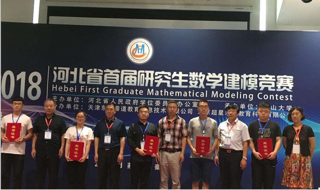 6月20日,河北省首届研究生数学建模竞赛颁奖大会在秦皇岛举行。我校40支参赛队经过激烈角逐,喜获省级一等奖1项、二等奖5项、三等奖14项,成功参赛奖18项。