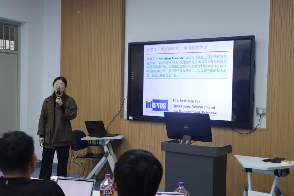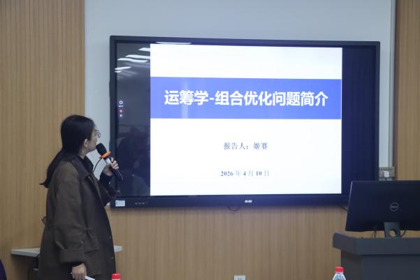 姬赛老师带来运筹帷幄的组合优化主题分享,从“运筹策帷幄之中,决胜千里之外”的古典智慧开篇,实现传统思想与现代数学理论的精彩碰撞。讲座围绕摄像头布设、背包问题、旅行商问题等经典案例展开,直观展现组合优化学科的实际应用价值,并深度拆解百万美金难题P=NP猜想,带领师生触摸数学前沿研究领域。针对计算量爆炸的复杂难题,姬赛副教授详细介绍运筹学中近似算法的应用逻辑,阐释其“不求极致最优,但求高效实用”的核心思路,完美平衡问题解决的效率与效果,让同学们领略到运筹学与组合优化的独特魅力。