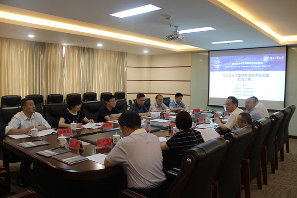 2018年5月19日,河北省科技厅组织以河北农业大学校长申书兴教授为组长、中国航天员训练中心李英贤研究员、郑州大学研究生院院长李玉晓教授、同济大学生命科学与技术学院副院长汪世龙教授、中国原子能科学研究院顾建中研究员、中国农业大学于福同教授为委员的专家组,对我校河北省分子生物物理重点实验室进行了验收。省科技厅平台与基础处处长李志平、副处长梁超出席了会议。我校副校长段国林、科学技术研究院副院长赵少伟、安海龙以及分子生物物理实验室负责人参加了会议。会议由梁超副处长和专家组组长申书兴校长主持。