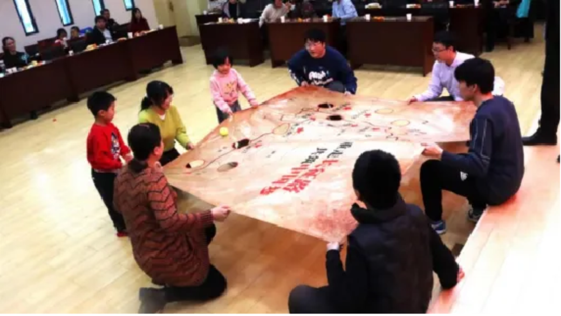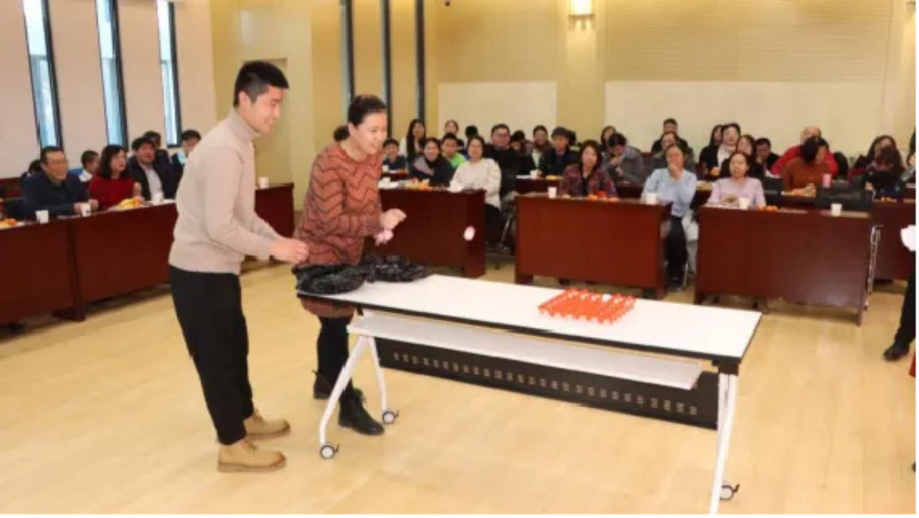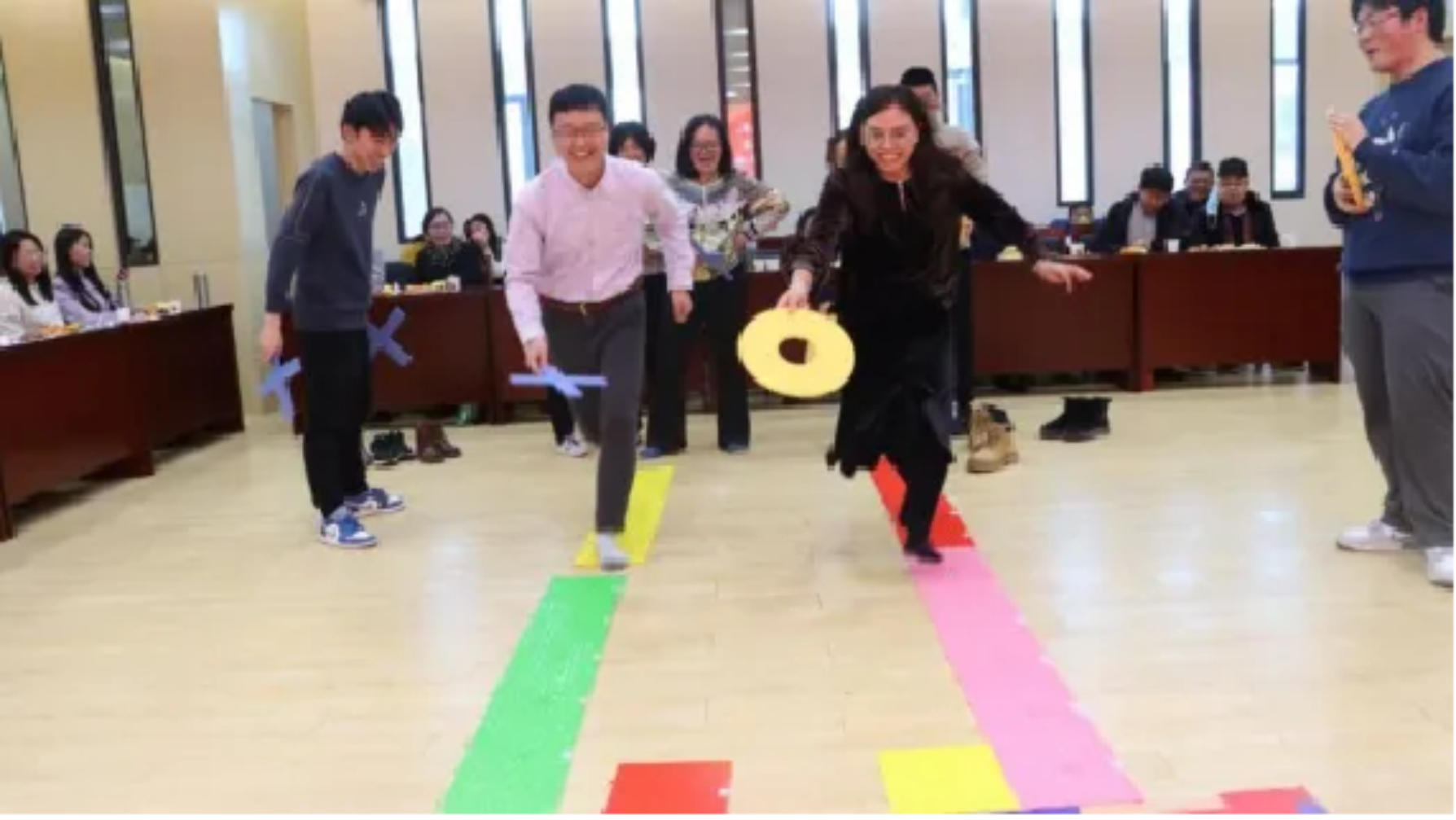 在精彩的联欢节目中,穿插了许多趣味游戏,有考验耐力与观察力的乒乓五子棋、有考验敏捷度与速度的接力三子棋、有考验团队配合与控制力的重走长征路……这些游戏都获得在场教职工及孩子们的热烈欢迎,现场欢声笑语、掌声不断,展现了老师们在严谨的科研工作之外活泼开朗的一面。