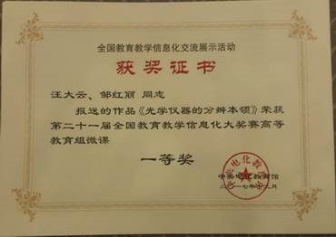 2017年12月17日至18日,中央电化教育馆举办的第二十一届全国教育教学信息化大奖赛决赛在北京铁道大厦隆重举行,大赛收到参赛作品5300余项,经过激烈的角逐,最终我院汪大云老师的作品获得了一等奖,为我院争取了荣誉。