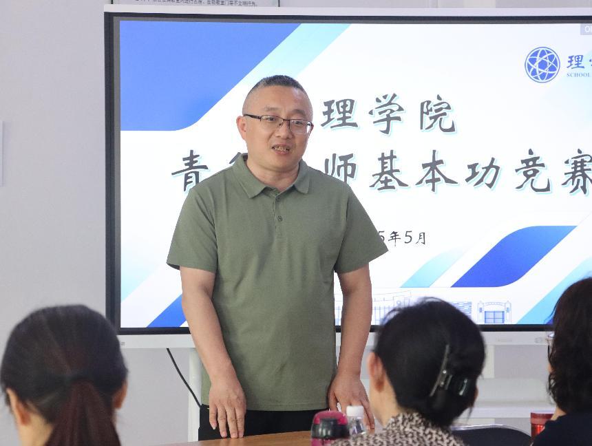 比赛伊始,赵全明主席简要介绍了学校青教赛的工作历程和近年来取得的成绩,赞扬了理学院优良的教学传统,鼓励学院青年教师要把握机遇,积极参与,以青教赛为契机,练好教学基本功、树立新理念、掌握新技术、运用新方法、应对新挑战,当好“传道授业解惑”的“大先生”,当好学生的“引路人”。