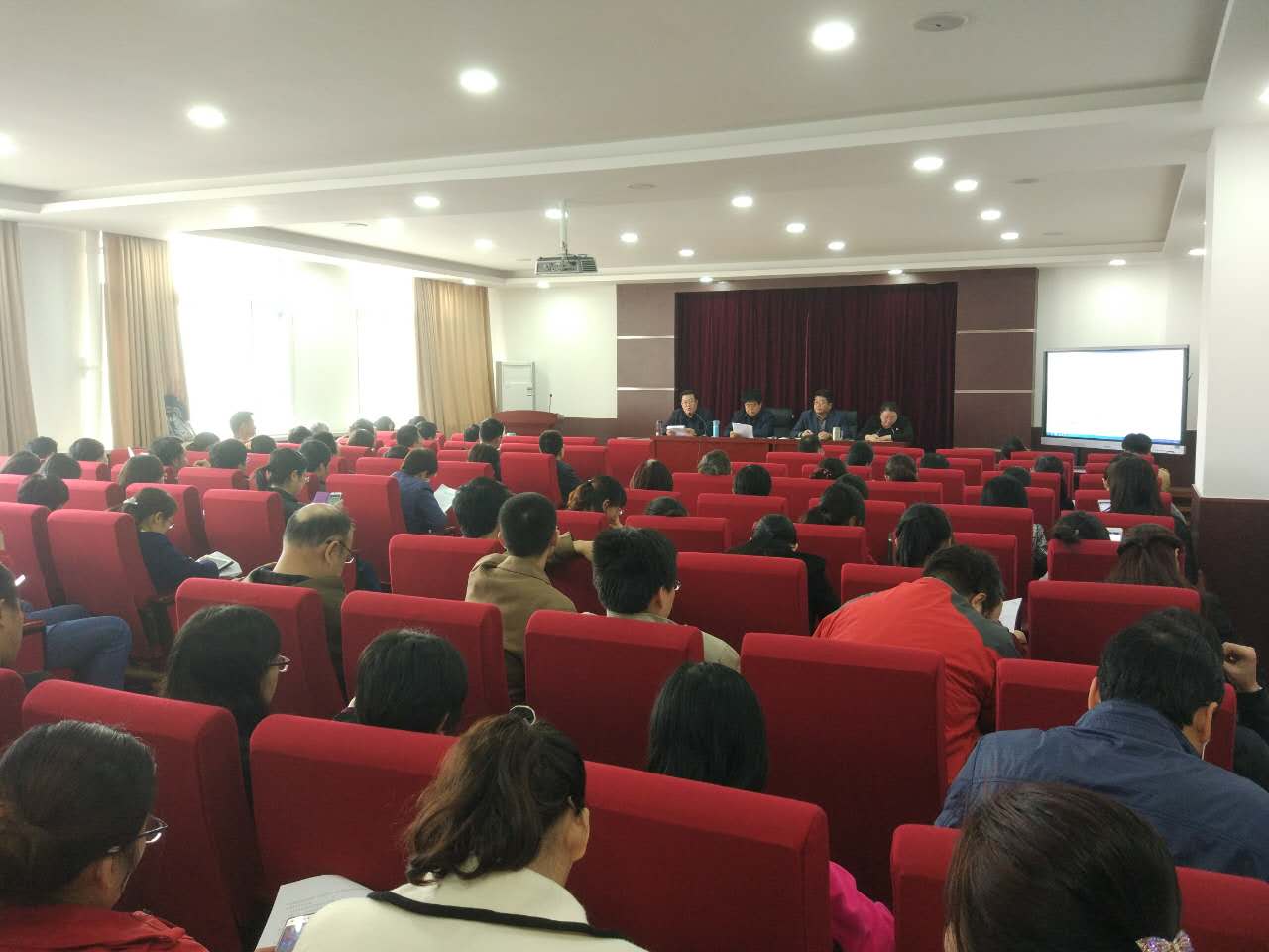 理学院于2017年10月27日下午,在学院楼416召开教工大会,传达了学校10月24日““世界一流学科”建设及本科教学工作审核评估和工程教育认证工作推动会”的会议精神,落实了学校布置到学院的学科建设、本科教学工作审核评估、科研等相关工作。会议由理学院院长张志东同志主持。