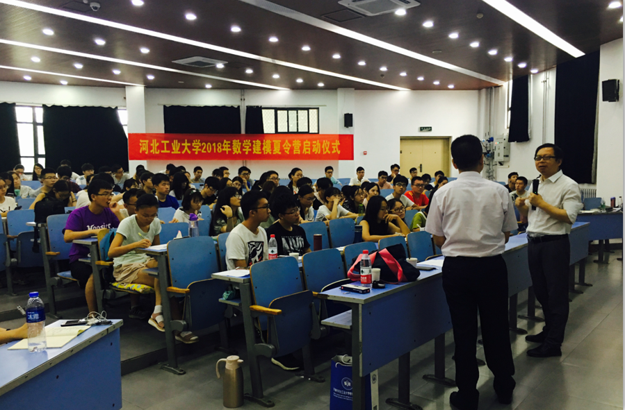 2018年7月14日上午,河北工业大学2018年数学建模夏令营启动仪式在我校北辰校区教学楼A101召开。仪式由理学院学工办主任兼团委书记张培培老师主持,指导教师代表苏国忠老师、参赛学生代表陈建怡同学分别进行了发言。我校一百五十余名参赛师生参加了夏令营启动仪式。