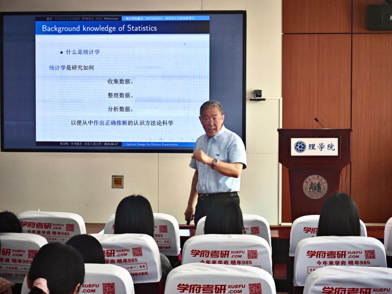 张崇岐教授的报告题目为“Optimal Design for Mixture Experiments using Exchange Threshold Accepting algorithm”。张教授从实例出发,对数学和统计这两个学科的联系和特点进行了生动的介绍,之后又以为多个目的构建的混合模型最优设计的Fedorov算法和阈值接受型算法为例,讨论了经典算法在寻找混合模型的D最优设计时可能影响收敛性和准确性的缺点。在讨论的基础上,给出了Fxchangc-Thrcsh-old Acccpting算法,通过使用元启发式子算法来提高收敛速度,并坚持Fedorov算法的idca同时提高收敛精度,在一定程度上克服了这些缺点,并与基于反项混合模型的Fedorov算法和ProjPSO算法进行了详细的评价和比较。