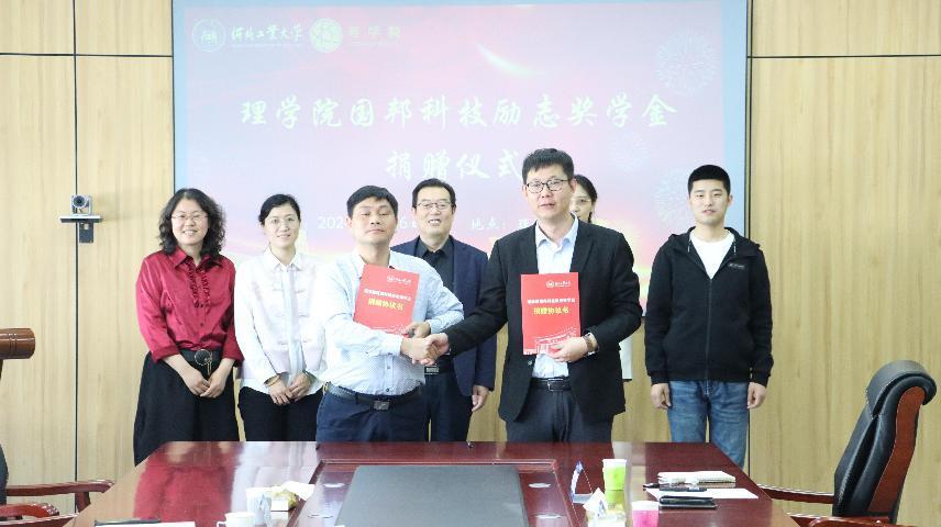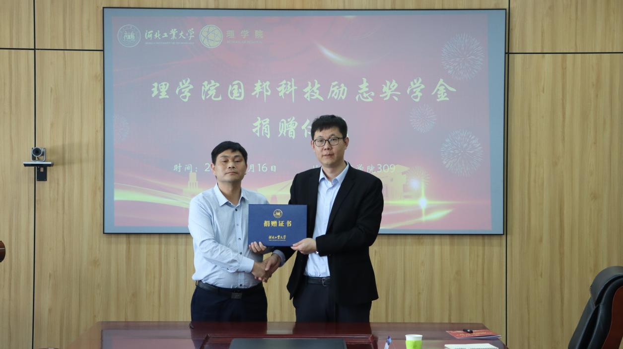为促进学校的教育事业发展,帮助理学院西南地区品学兼优、家庭经济困难的学生顺利完成学业,理学院2009届数学专业校友邹邦国创立的公司——天津国邦科技有限公司捐资5万元,设立“理学院国邦科技励志奖学金”。