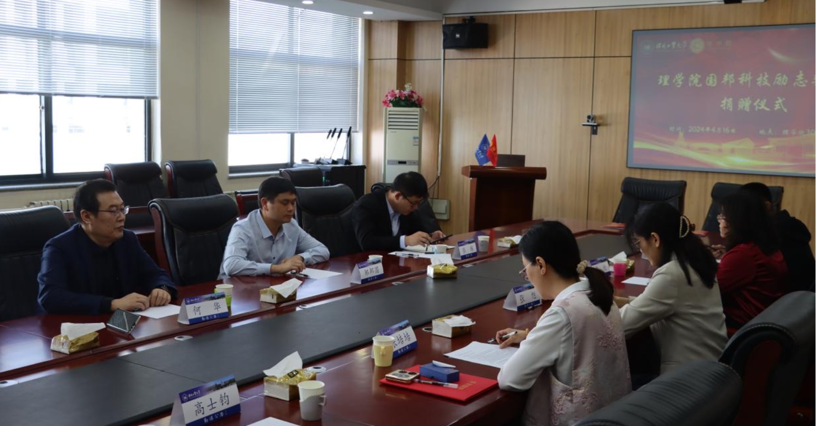 4月16日上午,奖学金签约捐赠仪式在理学院309会议室举行。邹邦国校友、理学院和学校教育发展基金会的领导及老师参加了此次活动,会议由理学院副处级辅导员张培培主持。