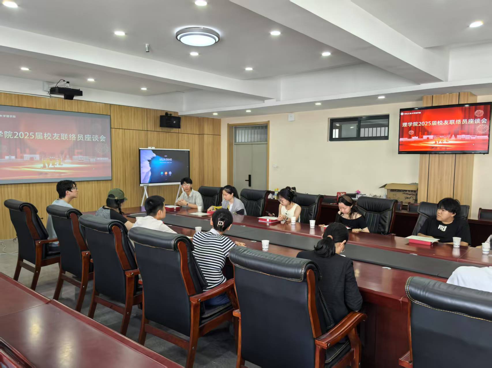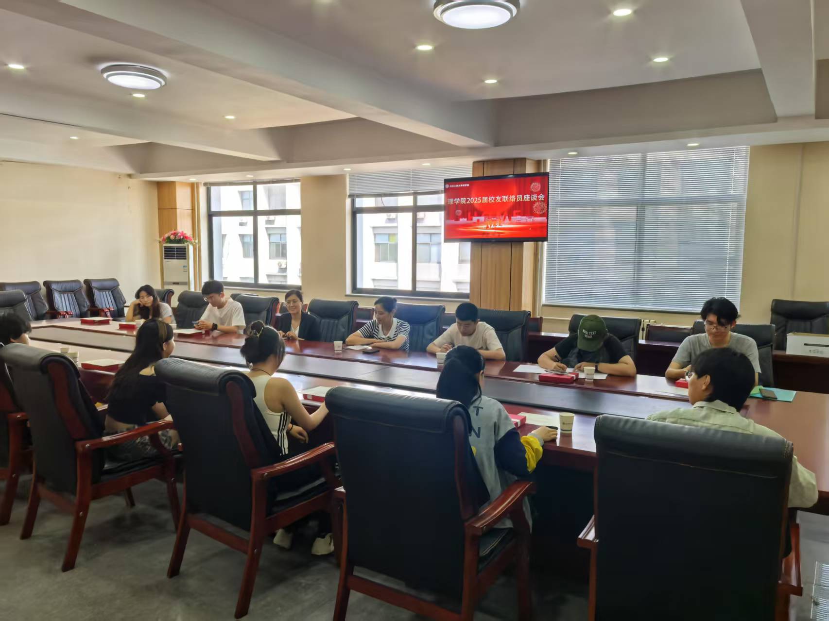 为凝聚校友力量,助力学院高质量发展,6月17日上午,理学院2025届校友联络员座谈会在学院309会议室举办。学院党委副书记兼副院长张旭、学工办主任兼团委书记、2021级辅导员魏梦坤以及全体2025届校友联络员出席,会议由学院副处级辅导员张培培主持。